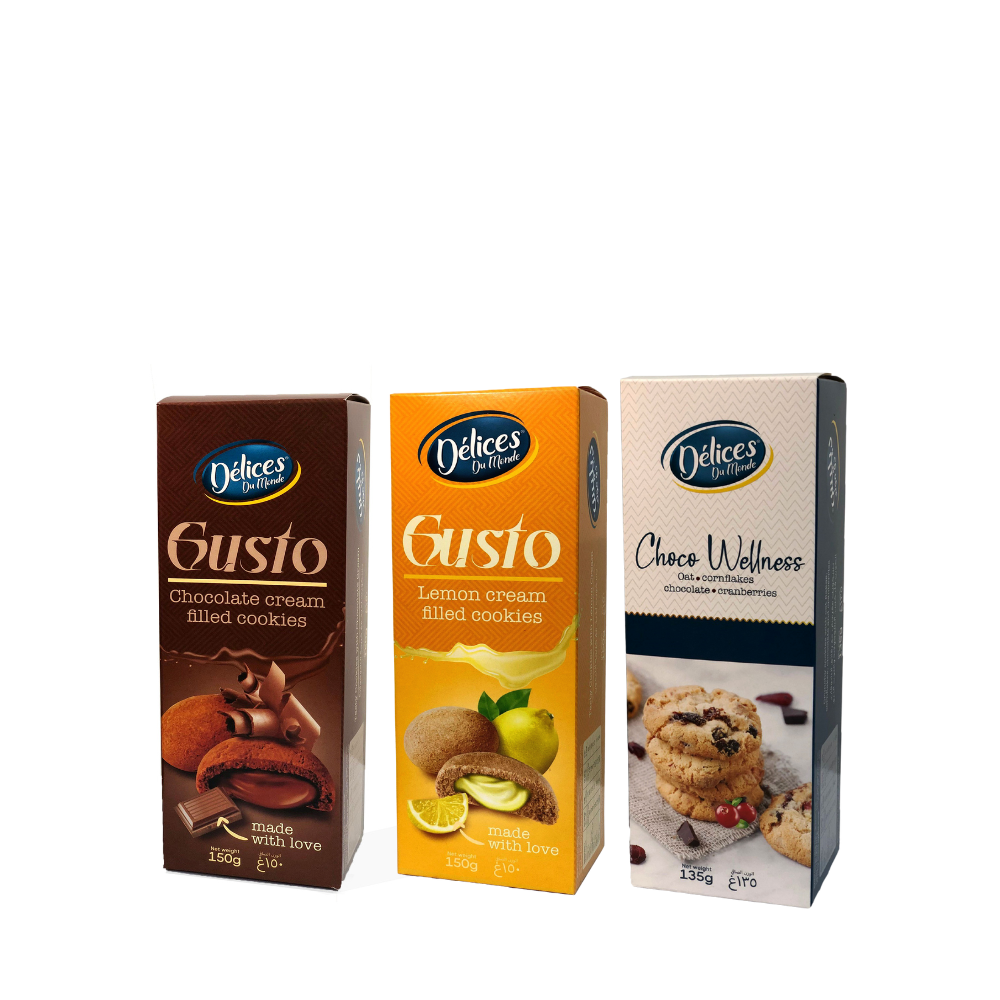 Delices Du Monde Gusto Chocolate Cream Filled Cookies + Gusto Lemon Cream Filled Cookies + Wellness Chocolate & Cranberry Oat Cookies